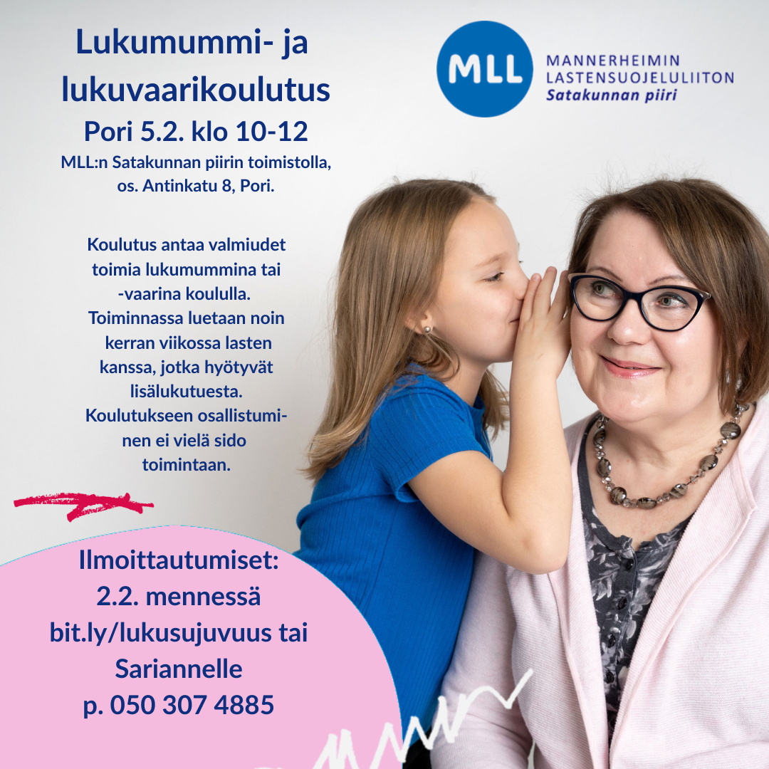 Sinustako lukumummi tai lukuvaari? Lukumummi- ja lukuvaaritoiminnan koulutus 13.1. klo 10-12 Porissa, os. Antinkatu 8 Pori. 💡 Koulutus antaa valmiudet toimia lukumummina tai -vaarina koululla, mutta…
